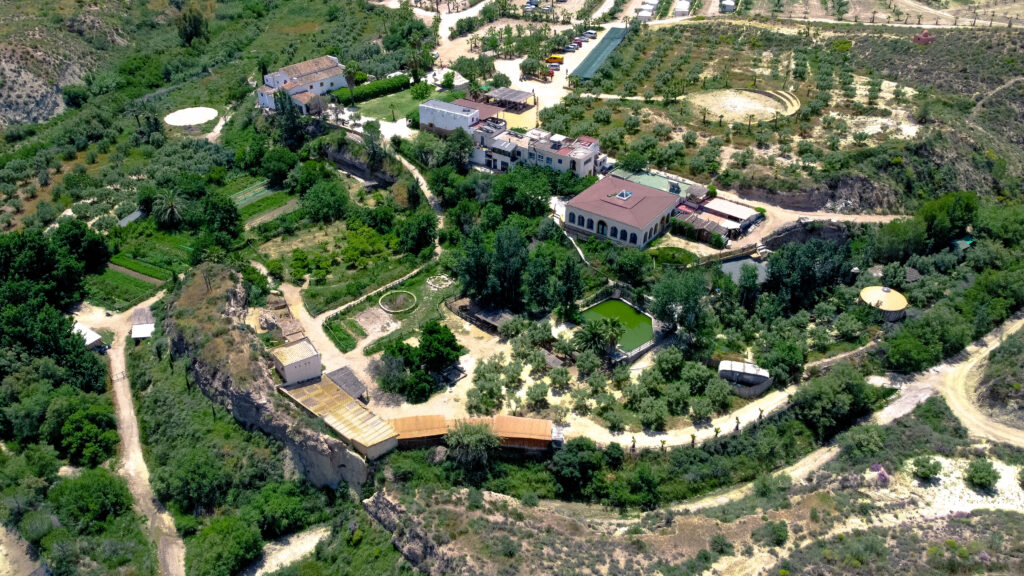 Entre las instalaciones se ofrecen recepción, bar, tienda, enfermería, biblioteca, espacio coworking y oficinas. También tiene un espacio wellness con hamam y masajes, baños de arcilla y chorros a presión (antiguo balneario), una alberca de aguas sulfurosas y una hayma balneario. Para los niños ofrece un parque infantil y una granja escuela. También ofrece un cortijo que se construyó a principios del siglo XIX, que dispone de una variedad diferente de dormitorios, teniendo en cuenta el deseo de cada persona. También cuenta con amplias salas donde poder realizar cursos y talleres, más variados espacios al aire libre para poder disfrutar de la naturaleza. Entre ellos se encuentra el jardín de los sentidos, un jardín zen, el área de la piscina y los prestigiosos baños de lodo y arcilla combinados con nuestras aguas terapéuticas. Ofrece una alimentación ovolactovegetariana con productos provenientes de nuestros huertos ecológicos, pudiendo disfrutar del verdadero sabor de los alimentos.