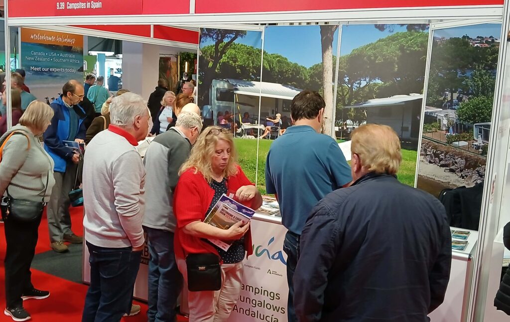La feria CARAVAN & MOTORHOME SHOW en Birmingham (Reino Unido), celebrada del martes 14 al domingo 19 de octubre, ha atraído un total de 96.149 visitantes. En 11 pabellones del recinto de la feria, más de 350 expositores expusieron más de 1.000 vehículos de acampada en una superficie de 85.000 metros cuadrados. Aprovechando esta masiva presencia de potenciales clientes campista, la Federación Andaluza de Campings asistió otro año más a esta feria para promocionar los campings de Andalucía. Dentro del stand de la Federación española de campings, la FAC ocupó un mostrador desde donde se ha atendido a cientos de personas interesadas en visitar Andalucía. Esta presencia fue posible en parte gracias al convenio de promoción entre la FAC y Turismo Andaluz, que nos permite asistir con mostrador a una feria estratégica para nuestro sector y a la empresa pública a estar en una feria donde no estaría sin la asistencia de la FAC.